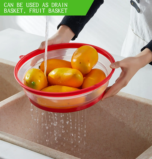[Multi-purpose] This foldable lid can be used as a microwave heating lid, drain basket, storage basket, fresh-keeping lid, use, one cover for multiple purposes, easy to kitchen