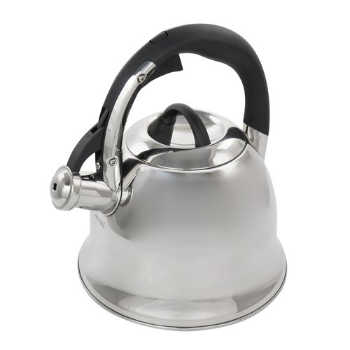 Start your bustling day with the Mr. Coffee Coffield 1.8 Quart Stainless Steel Whistling Tea Kettle with Bakelite Handles. Suitable for any stove top burner, this kettle quickly heats up water to a boil. The lock open whistling spout alerts you as soon as the water is ready. The mirror finish matches and dazzles with any kitchen space. Heat water for a cup of coffee, tea, hot chocolate or a quick ready to eat meal.