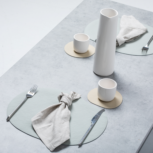 Natural leather placemat and coaster | grey blue
