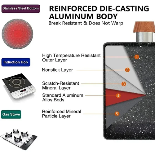 【Durable Construction 】The cookware pan is made by stainless steel,which heats up quickly and spreads heat evenly.Easy to clean for superior nonstick performance,just clean with soft sponges. It’s easy to clean and we recommended breeze, hand washing