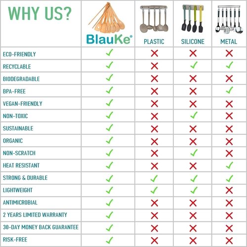 • These wooden spoons for cooking are made of strong, durable bamboo, which is highly renewable and sustainable. They are BPA-free, plastic-free and metal-free.